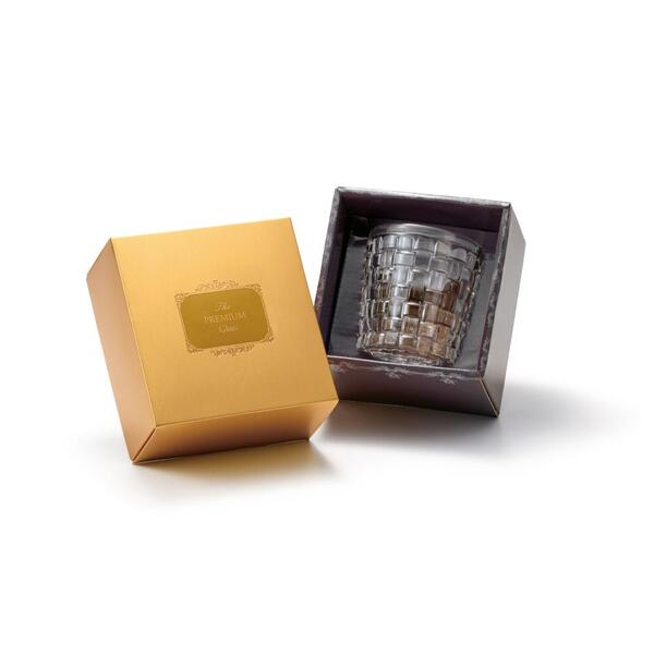 ほどよい重厚感とホールド感。大人のためのロックグラスをプレミアムなゴールドボックスに納めました