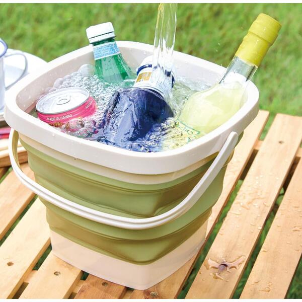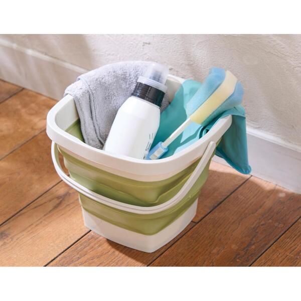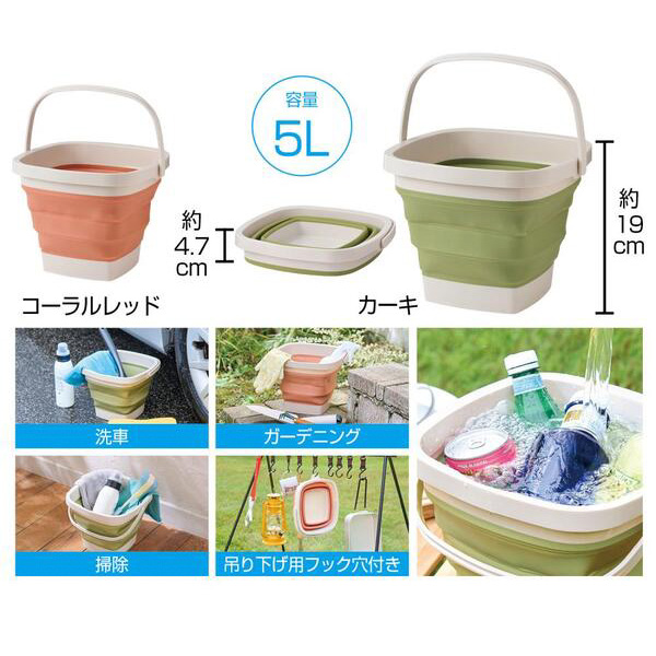 アウトドア・洗車・お掃除に大活躍!収納時に薄くたためるジャバラ式のバケツです。