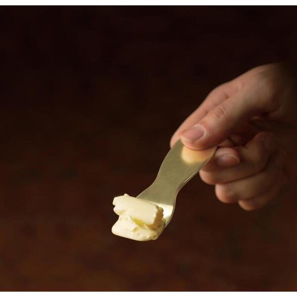 固いアイスも溶ける「じわっととろける」アイスクリームスプーン。アルミ製で熱伝導が良く、手の熱がアイスに伝わります。