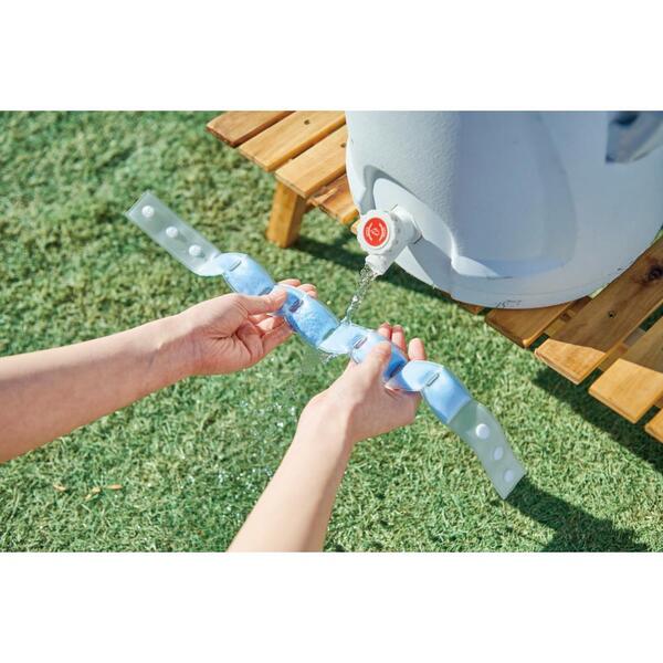 約28℃以下で自然凍結するPCM素材を使用しており、冷凍庫はもちろん、水道の流水でも凍結します。