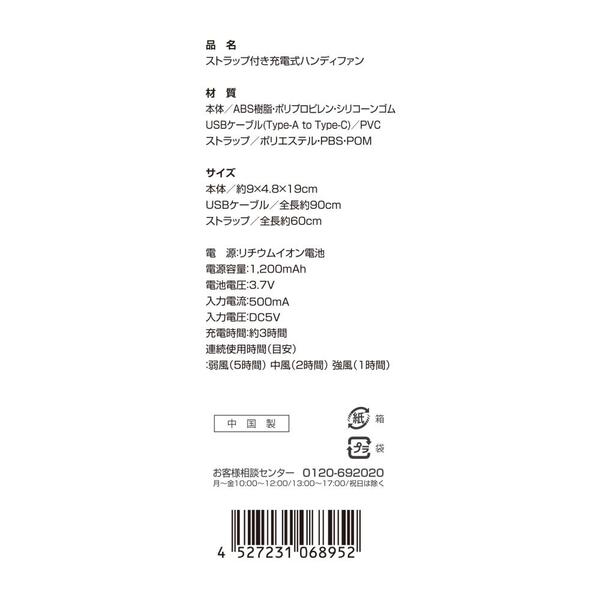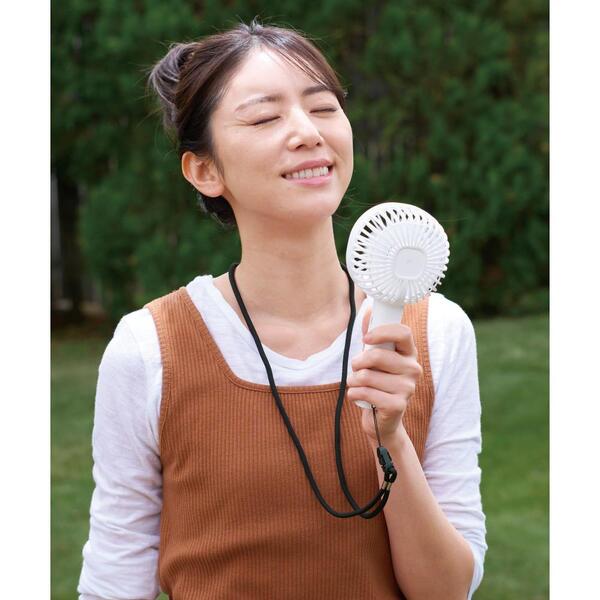 約3時間で充電完了!ハンズフリーで持ち歩けて、いつでもサッと手に取れるネックストラップ付きファン。