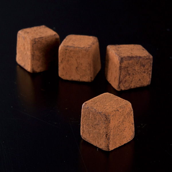 コンパクトサイズの化粧箱にくちどけなめらかな生チョコ風のキューブタイプのミルクチョコを4個封入しました。