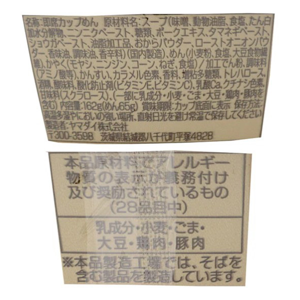| 個装形態 | カップ入り(17.5×17.5×7.8cm) |