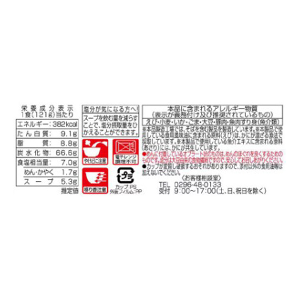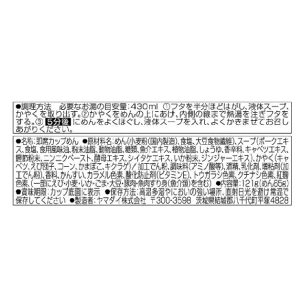 | 個装形態 | カップ入り(17.5×17.5×7.8cm) |