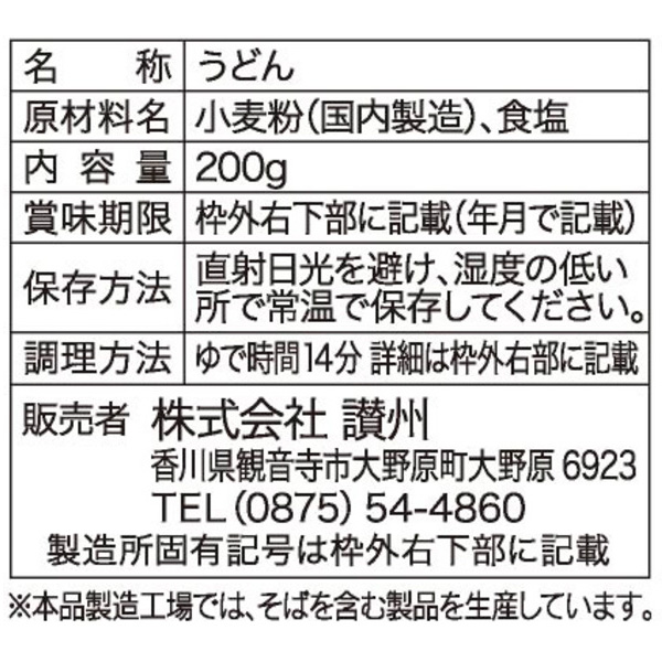 | 備考 | 【カートン割れ不可】 9箱(9×1カートン)単位でのご注文になります。 【軽減税率8%】 ※自動見積では消費税10%で表示されますが、商品は軽減税率8%となります。 送料が発生する場合は、送料のみ消費税10%となります。 <セット内容> 熟成仕込み讃岐うどん200g×6袋 お持ち帰りポリ袋同梱 賞味期間/540日間(常温) |