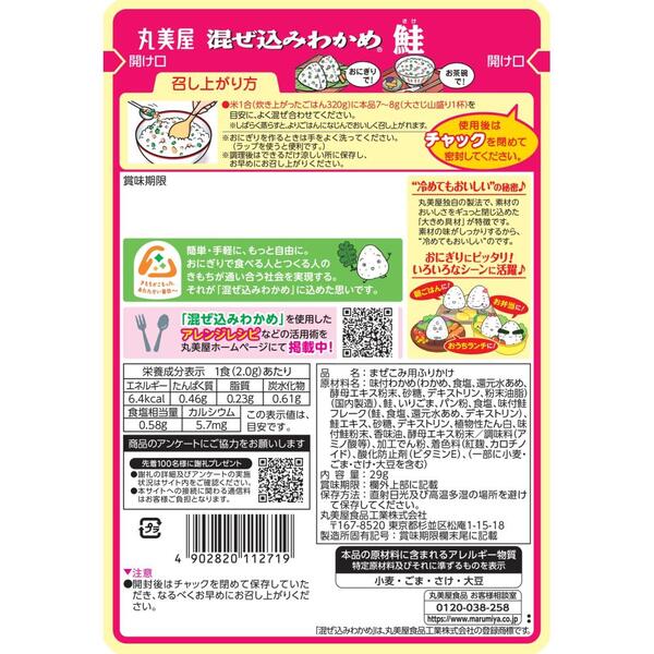炊き立てごはんに混ぜれば、相性抜群のわかめと鮭の美味しい香りが広がります。