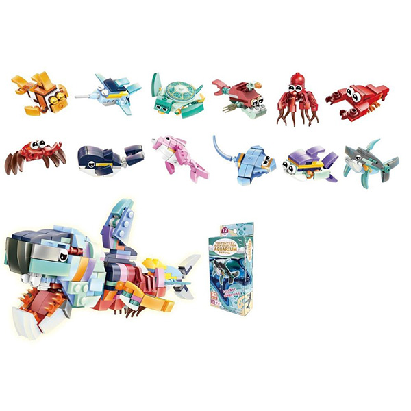 小さなブロックを組み立ててかわいい魚などが作れるブロックパズルです。