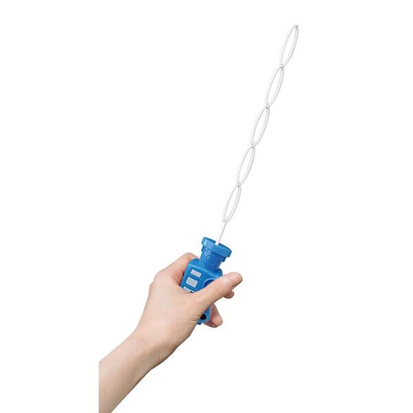 5連リングでたくさんのシャボン玉が作れる、大きなスティックシャボン玉です。