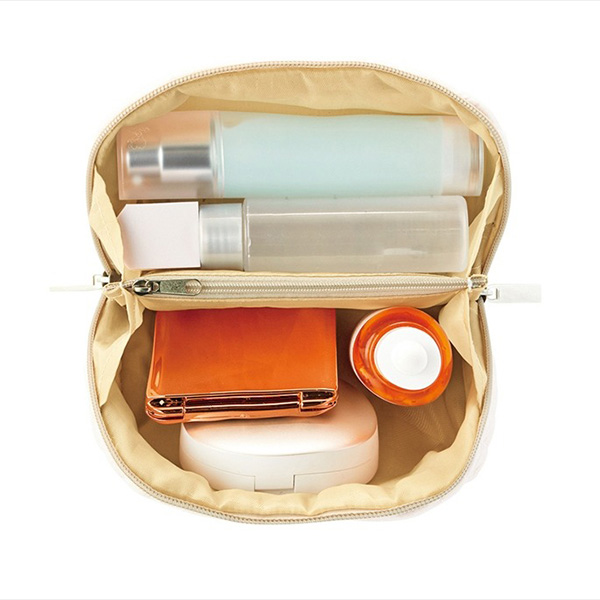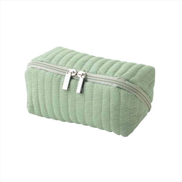 トレンドのヌビ生地を使用。ガバッっと大きく開くから、中身が見やすく出し入れも簡単なポーチです。