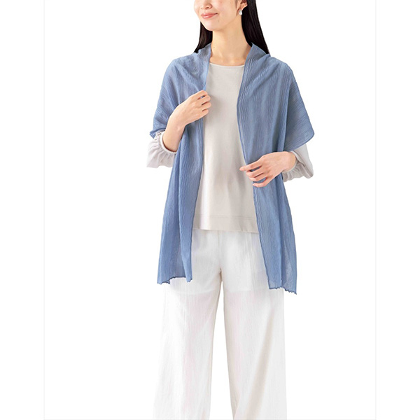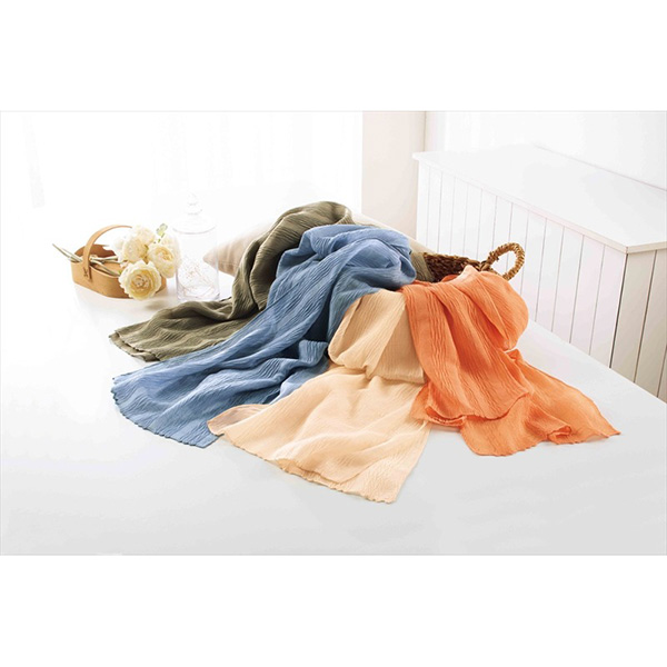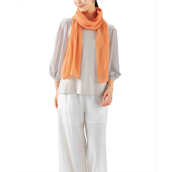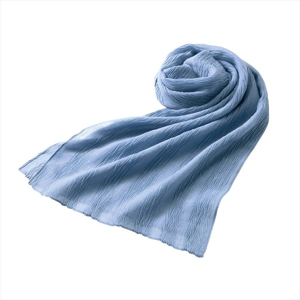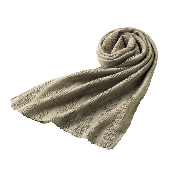 シワ加工が施されたふんわりしたストールです。いつもの装いにこなれ感をプラスします。