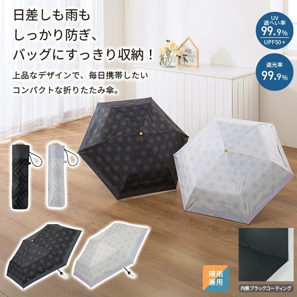 モノクロ和柄 晴雨兼用折りたたみ傘