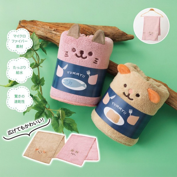 折りたたむと、猫・犬のぬいぐるみに変身!吸水速乾のマイクロファイバー素材で実用性抜群のフェイスタオル。