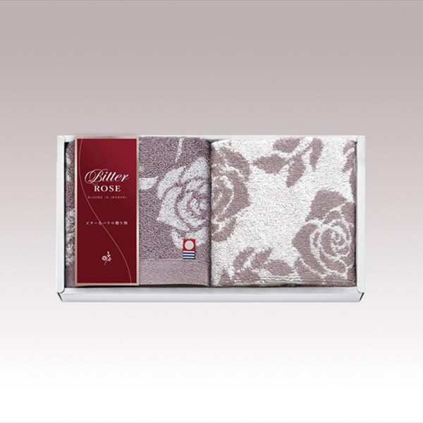 エレガントなバラ柄のタオルが2枚セットに。上質なタオルギフトとして、大切な方への贈り物に最適です。