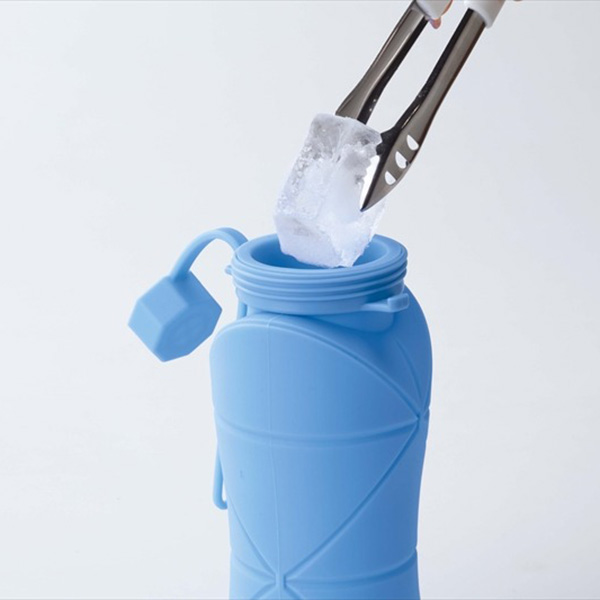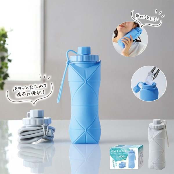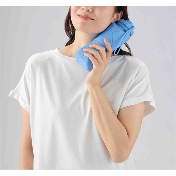 使わないときはコンパクトに。水や氷を入れて、熱中症対策でも活躍する、簡単に折りたたみができるボトル。