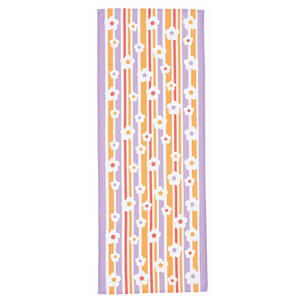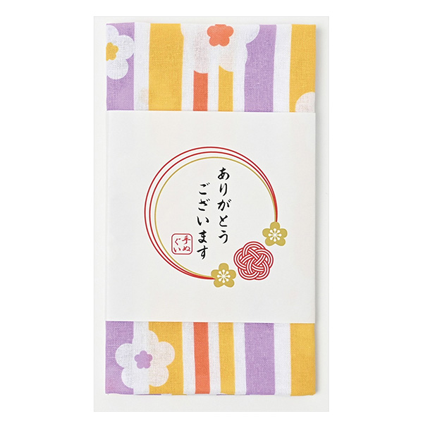 モダンな縞模様と愛らしい小梅のコントラスト。使うほどに肌に馴染むやさしい風合いの手ぬぐいです。