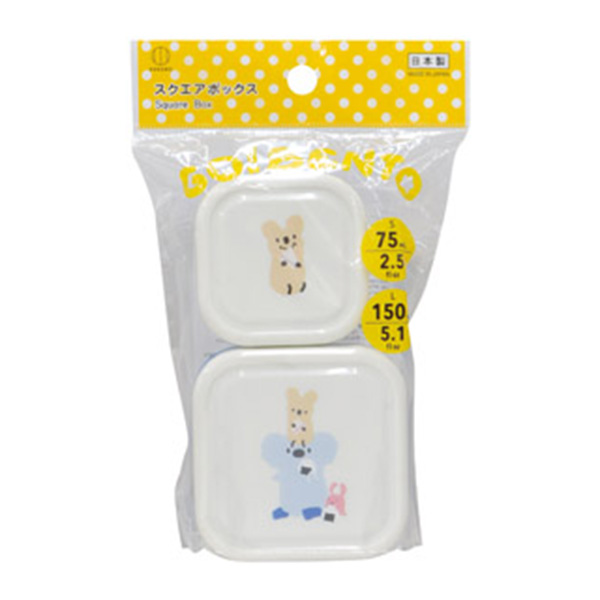 かわいいキャラクターがプリントされたスクエアボックスの大小2個セット。