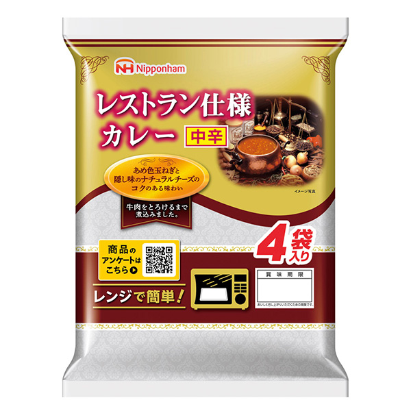 電子レンジで簡単につくれる日本ハムのこだわりのレストラン仕様のカレーが手提げ箱に4食入ったギフトセットです。