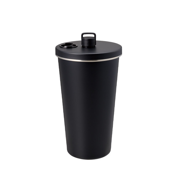 スライド式蓋付き真空二重構造ステンレスタンブラー(ブラック)