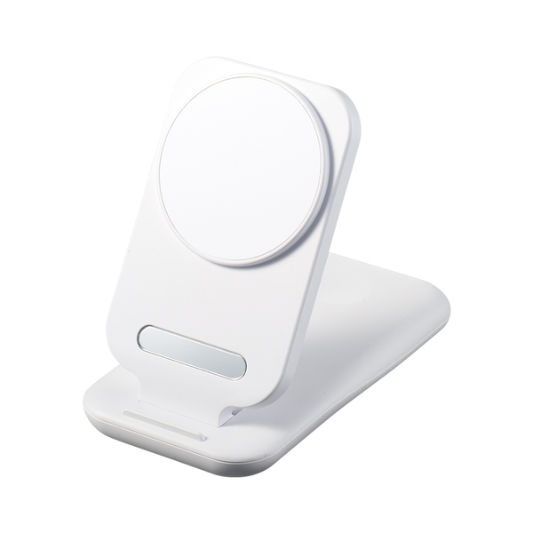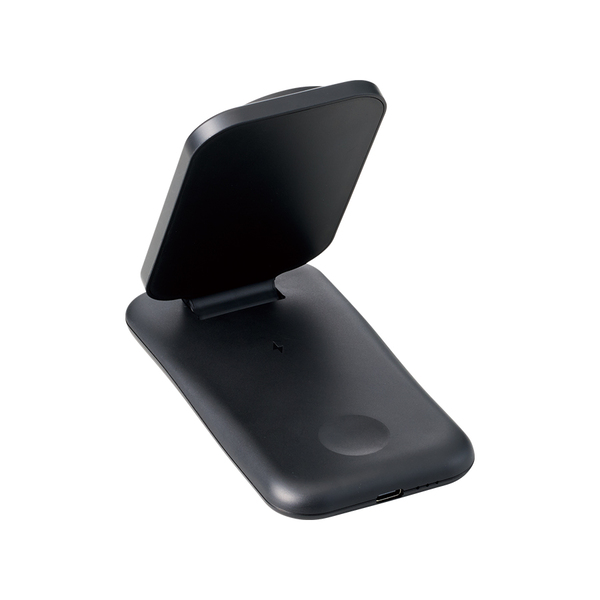 スマートフォン、ワイヤレスイヤホン、Apple Watchが3台同時に充電が可能なワイヤレス充電器です。