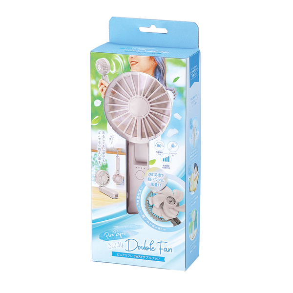 折りたたみ式2WAYダブルファン(カラビナ付き)(ミストホワイト)