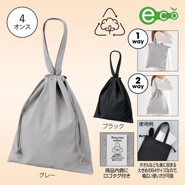 スフィア・リサイクルコットンフラット2WAY巾着バッグ(グレー)