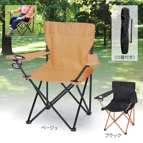 レジャーアンドライフ・ポータブルチェア(ひじ掛け付き)(ベージュ)