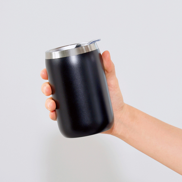スライド式蓋付き真空二重構造ステンレスタンブラー(ブラック)