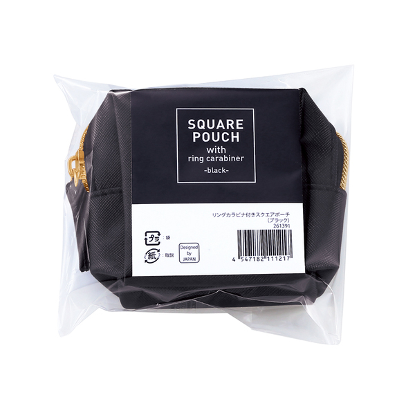 リングカラビナ付きスクエアポーチ(ブラック)