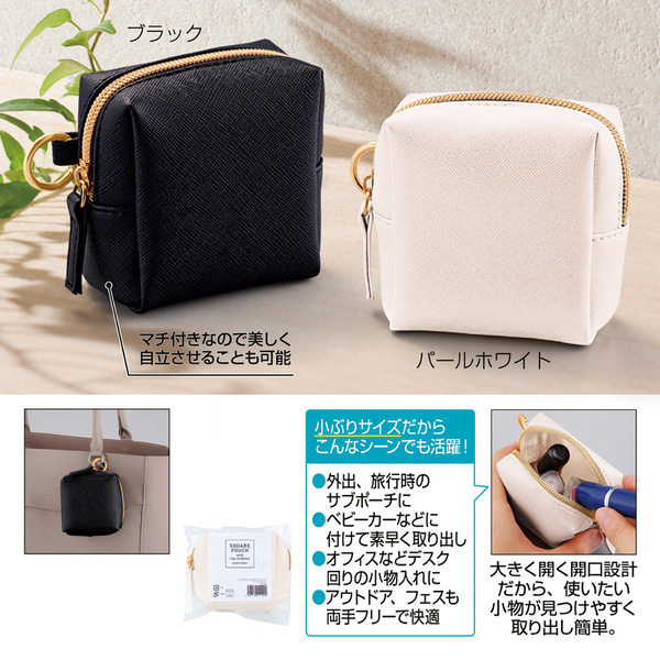 リングカラビナ付きスクエアポーチ(パールホワイト)