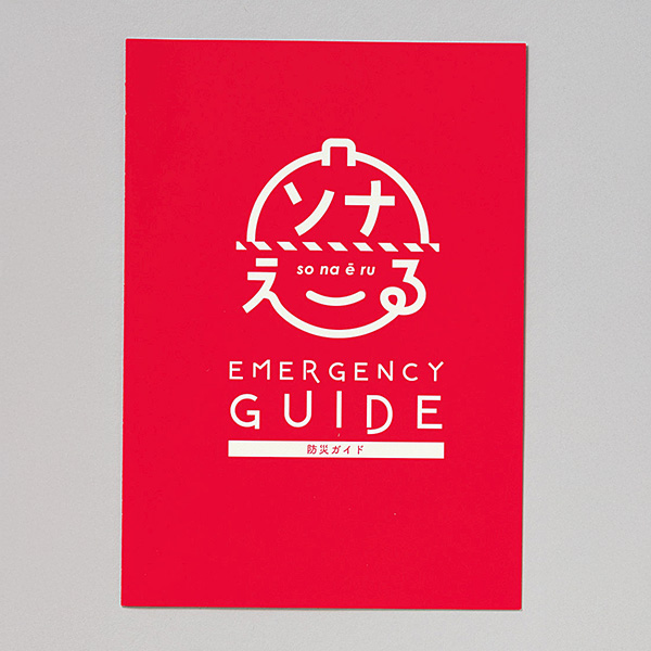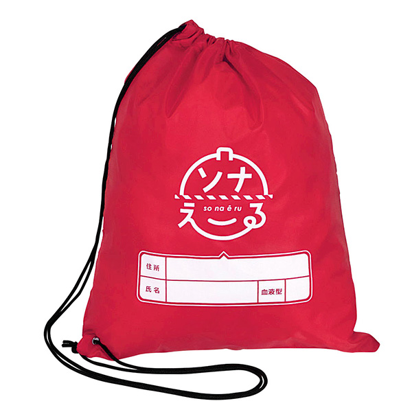 緊急時のために「ソナえーる」。肩掛けできる非常用持出袋と必須防災アイテムがセットになっています。