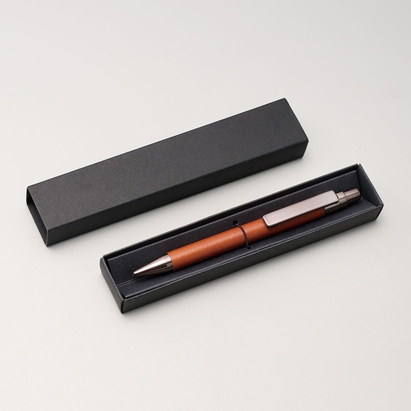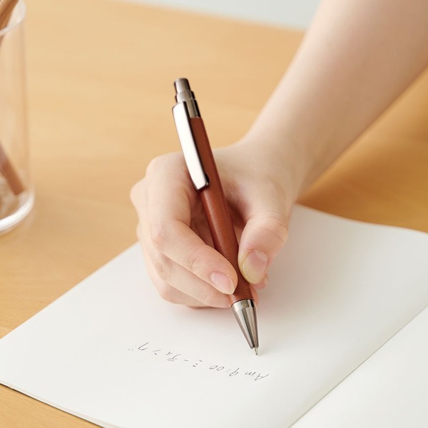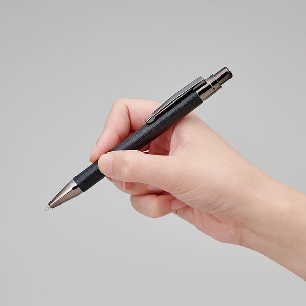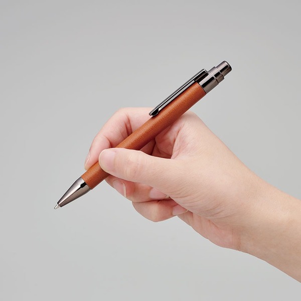 ボディに合成皮革を使用した、手になじむ上品なボールペン。