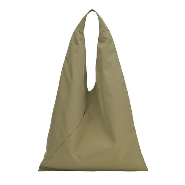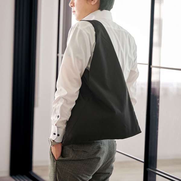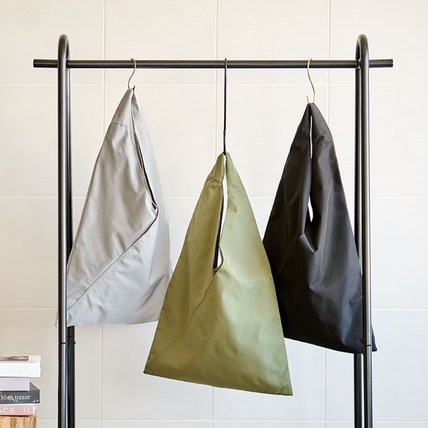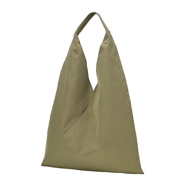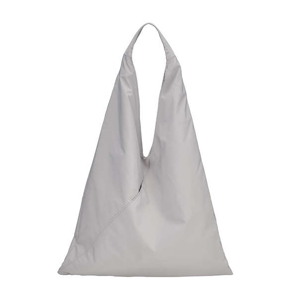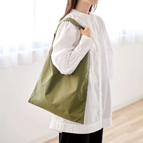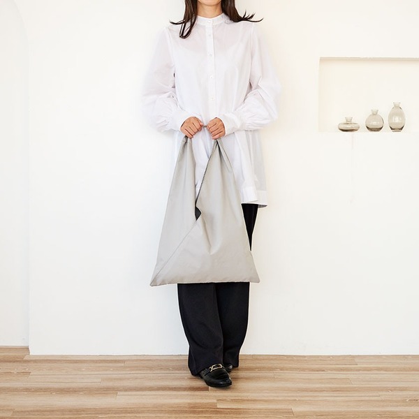 三角のフォルムがユニークなトートバッグ。