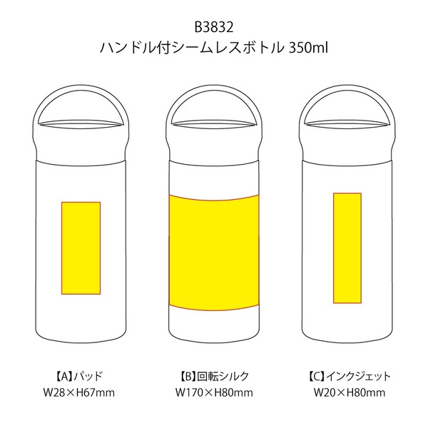 | 印刷・範囲 | パッド印刷:W28×H67mm 回転シルク印刷:W170×H80mm インクジェット印刷:W20×H80mm |