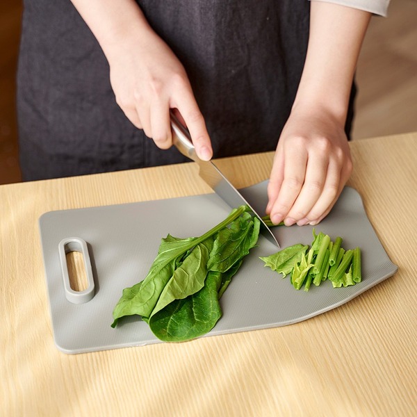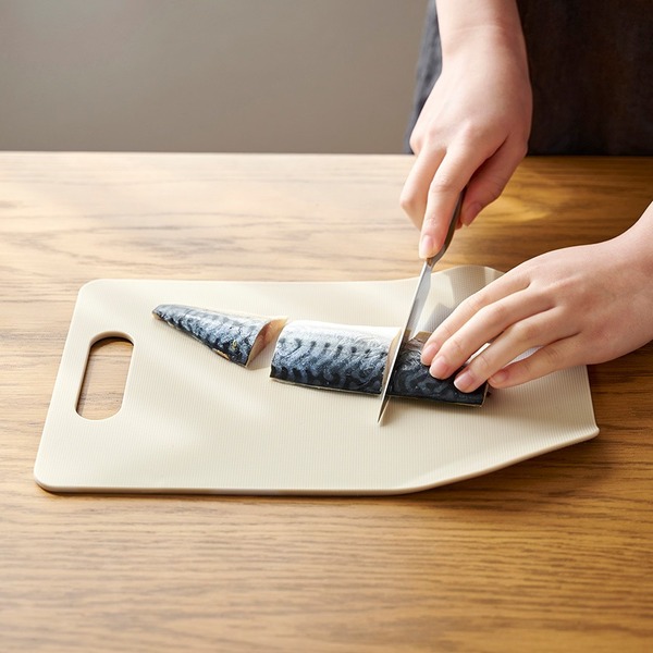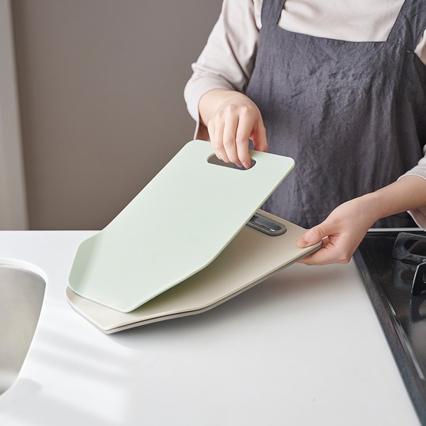3枚重ねてコンパクトにさりげなく収納可能でインテリアにも馴染むデザインのまな板セット。