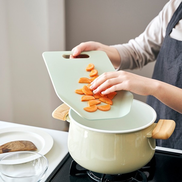 切った食材をお鍋やフライパンに移しやすいようにフチが立っていたり、