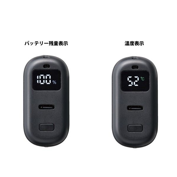 | 備考 | ■カイロ使用時間(室内約25℃の場合) 42℃-約7時間 47℃-約6時間 52℃-約5時間 ※使用時間は周囲の温度によって異なります ※5000mAH ※温度切り替え(42℃・47℃・52℃) ※本製品の充電中に、カイロ機能をご使用いただくことはできません。 ※カイロ機能が作動中は、他機器への充電をすることができません。モバイル機器などを充電したい場合は、カイロ機能をオフにしてください。 ※タイマー・オートオフ機能はございませんので、ご使用後は電源の切り忘れにご注意ください。 |