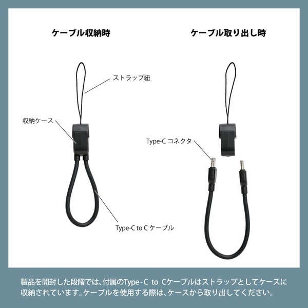 さらに、ストラップと充電ケーブルがひとつになった2in1仕様なので、携帯しやすいだけでなく、