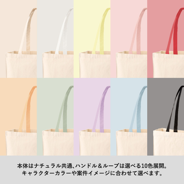 バッグ本体は共通のナチュラルカラーで、ハンドルとループは10色展開のため