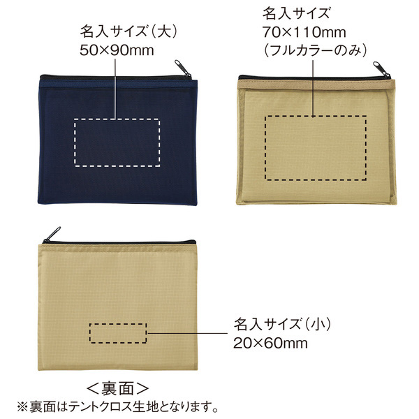 | 印刷・範囲 | シルク印刷:50×90mm パッド印刷:(裏面)20×60mm ※裏面はテントクロス生地となります 熱転写印刷:70×110mm |
