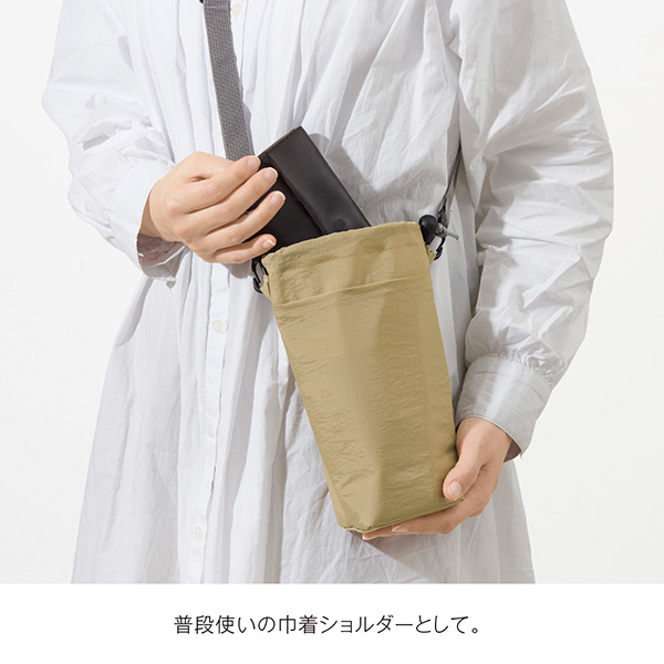 小物や飲み物を分けて持ち運べるマルチショルダー。