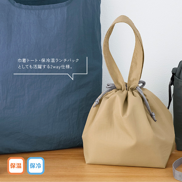 巾着トートとしても保冷温ランチバッグとしても活躍する2way仕様。
