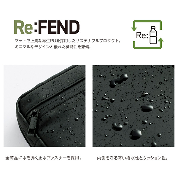 マットで上質な、撥水性に優れた再生PUを採用したサステナブルプロダクト。