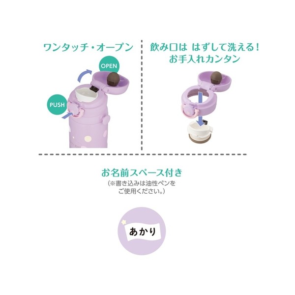 | 備考 | 実容量/0.5L 保温効力(6時間)/68℃以上 保冷効力(6時間)/10℃以下 ※スポーツ飲料OK ※温めたスポーツ飲料は入れないでください。 ※本体は水中に放置しないでください。 |