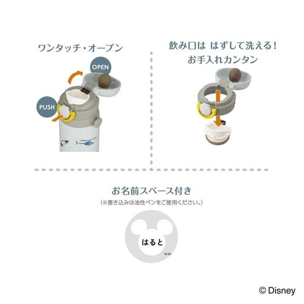 キッズが好きなミッキーと乗り物のイラストをあしらいました。保温・保冷OK。