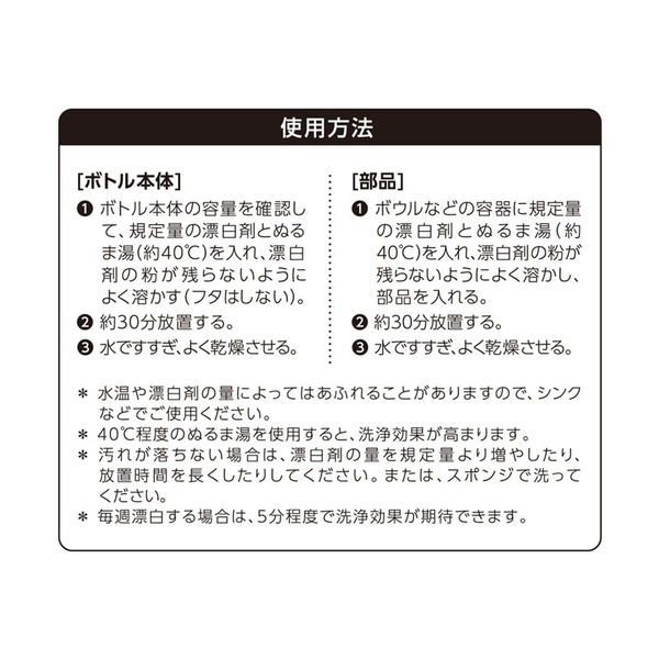 茶しぶ、着色汚れを落とし、除菌にも!すべてのパーツに使える酸素系漂白剤です。