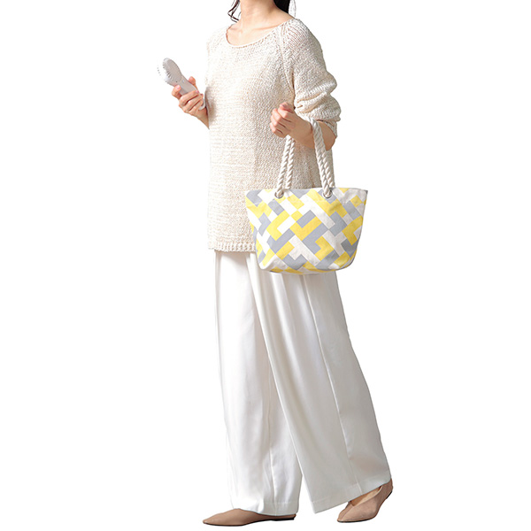 ロープハンドルがアクセント!丈夫な生地に便利な内ポケットとマグネットボタン付きで使い心地も抜群です。