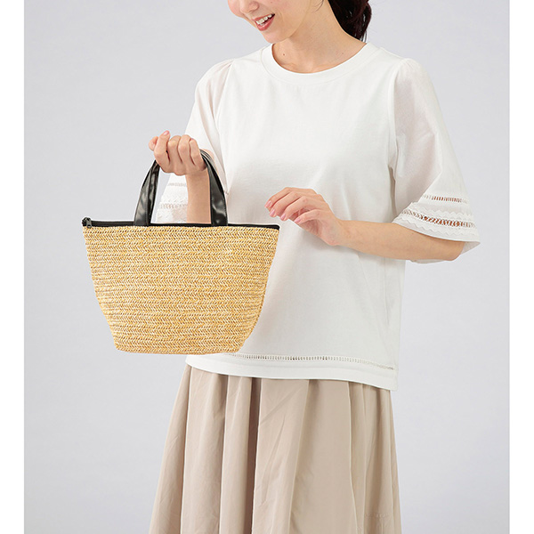 持つだけで一気に夏気分!涼しげな雑材風トートバッグです。