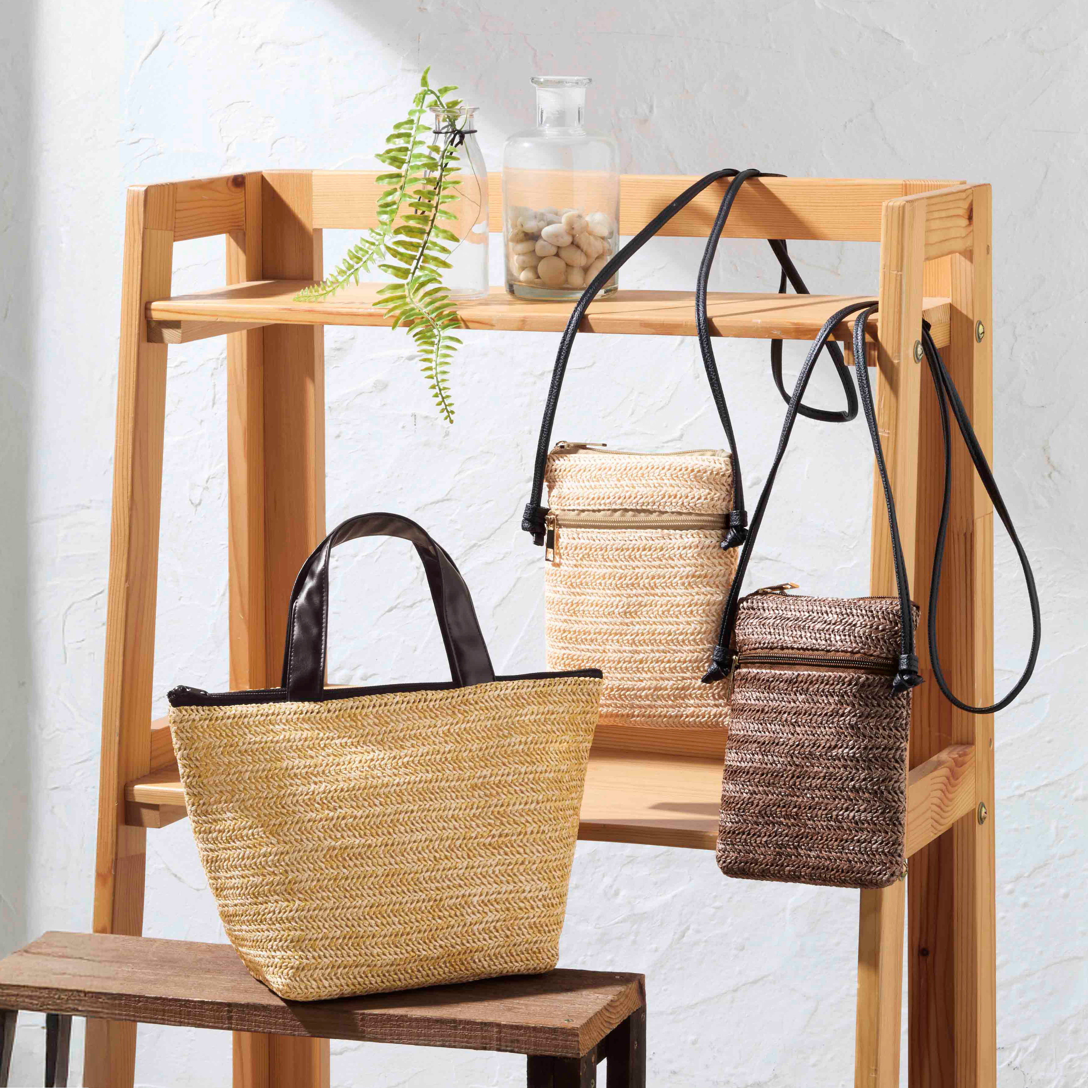 持つだけで一気に夏気分!涼しげな雑材風ショルダーバッグです。