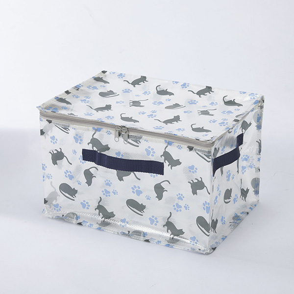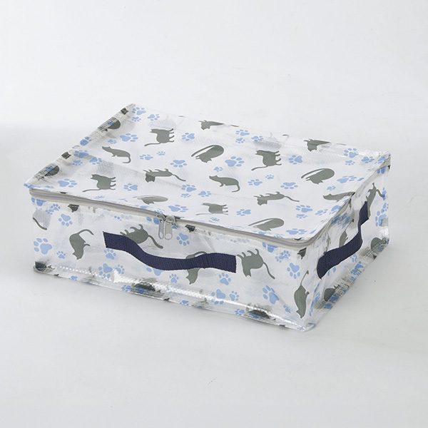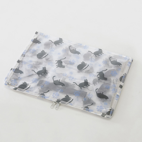 可愛い猫柄の半透明収納バッグ。中身が見えるので便利です。