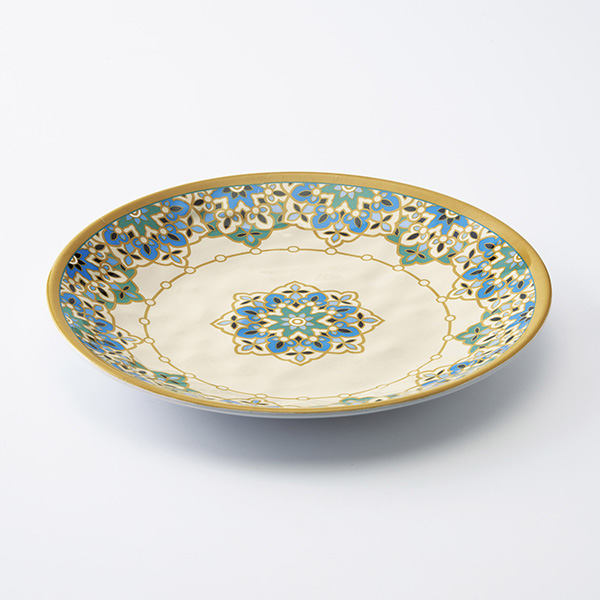 軽くて割れにくい、陶器みたいなメラミンのプレートです。鮮やかな柄が食卓に映えるパスタ皿です。